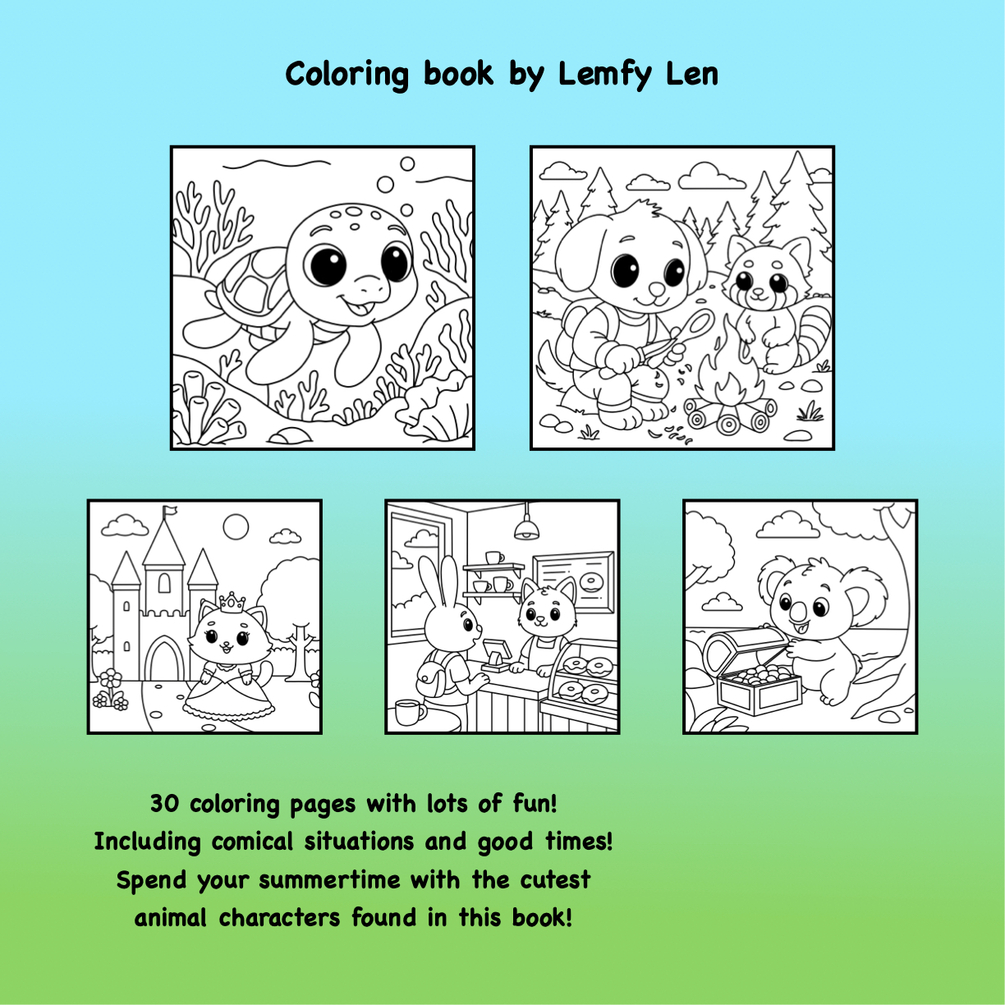 30 coloring pages with lots of fun! Including comical situations and good times! Spend your summertime with the cutest animal characters found in this book!